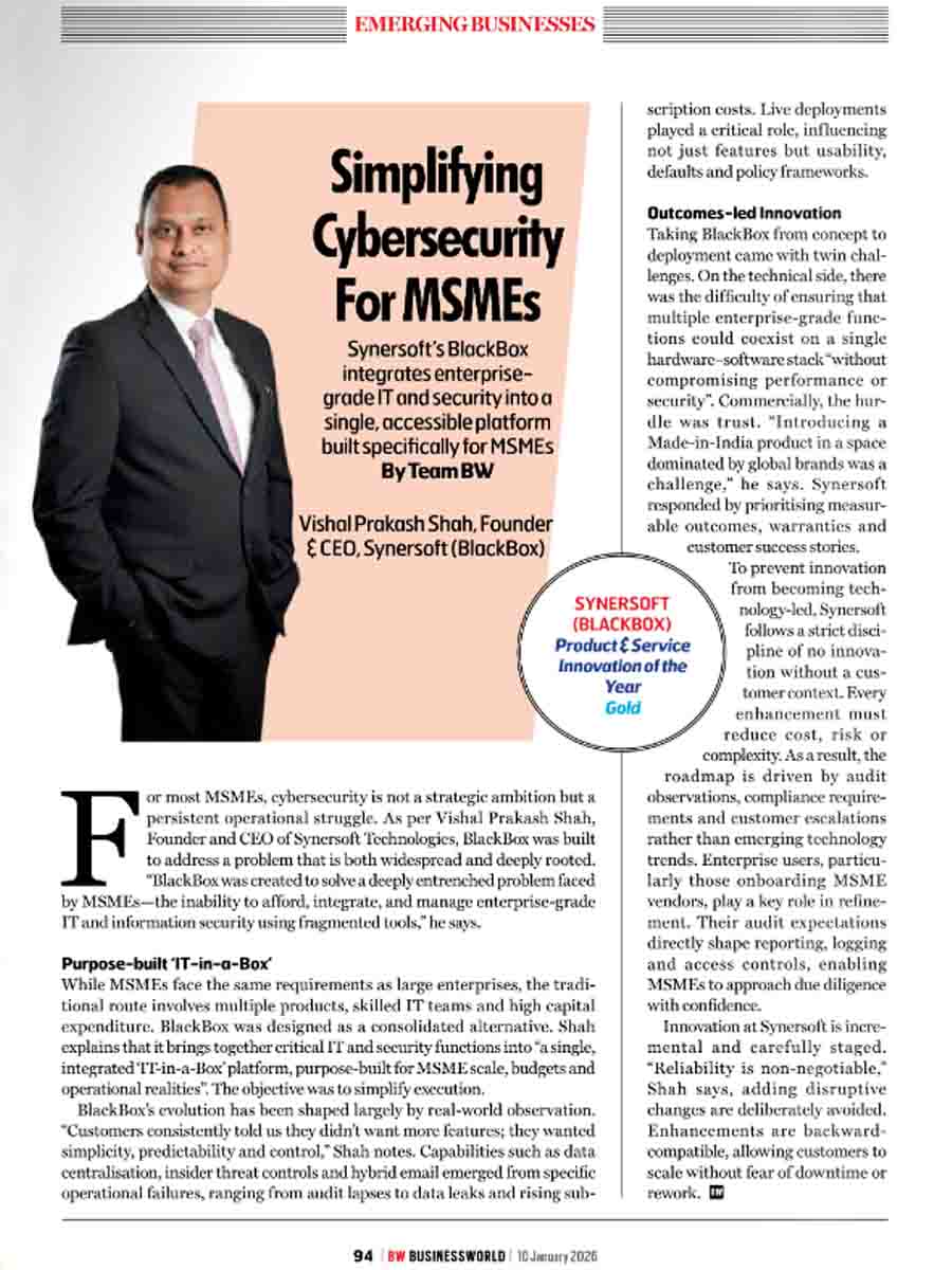 Synersoft's BLACKbox integrates enterprise-grade IT and security into a single, accessible platform built specially for MSMEs